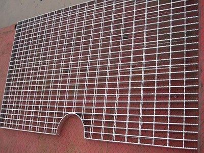 熱鍍鋅鋼格板是由負(fù)載扁鋼和橫桿按一定間距經(jīng)緯排列,在高壓電阻焊機(jī)上焊接而成原板,經(jīng)切割、切口、開孔、包邊等工序深加工而成客戶要求的成品。